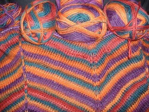 About 3/4 of the back of the sweater is knit. Here is a picture of it with the yarn.